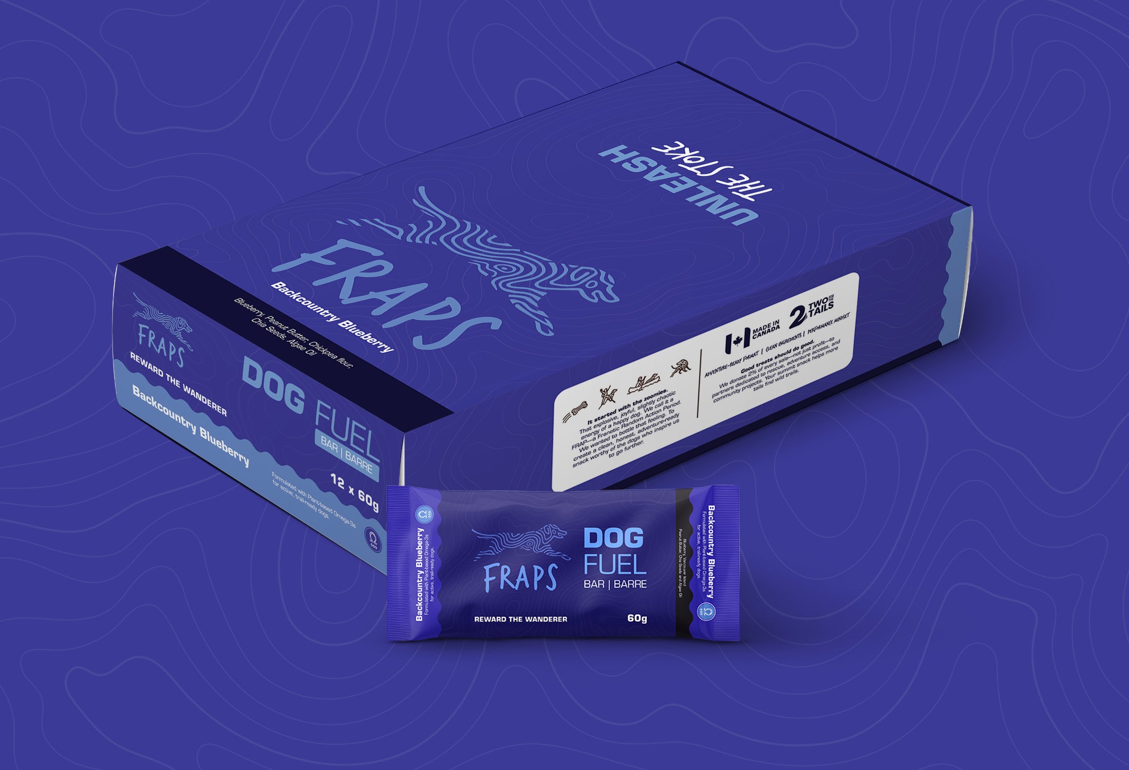 Built for long miles and quiet trails, this plant-based FRAPS bar delivers steady energy and functional nutrition for adventure-ready dogs. Made with human-grade ingredients—organic peanut butter, blueberry, sweet potato, oats, chia, and algae oil—it’s rich in omega-3s to support joint health, mobility, and recovery, helping active pups stay strong from the first step to the last descent.