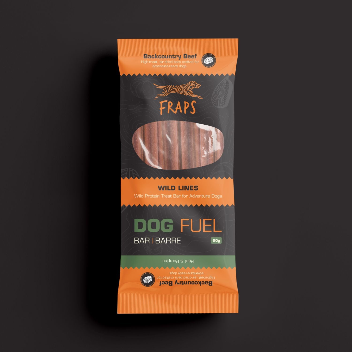 Built for big days and bigger appetites, this meat-first FRAPS bar combines real beef with pumpkin for a deeply satisfying, high-reward treat that keeps adventure dogs motivated mile after mile.